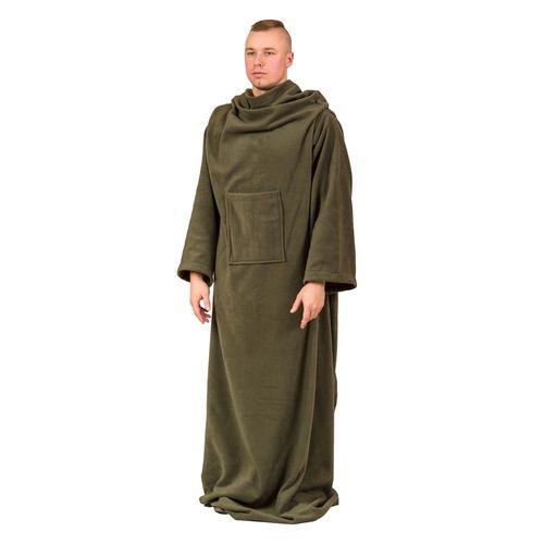 Kocyko-szlafrok - Oliwkowy to idealne rozwiązanie dla wszystkich miłośników komfortu i ciepła w chłodne dni. Stworzony z myślą o długich jesienno-zimowych wieczorach, ten miękki i ciepły koc z rękawami to połączenie wygody tradycyjnego koca z praktycznością szlafroka. Idealnie otuli Cię, sprawiając, że nie będziesz chciał/a oderwać się od kanapy! Z wygodną kieszenią w przedniej części, bez problemu zmieścisz tam pilot do telewizora, telefon czy inne drobiazgi niezbędne do relaksu.
