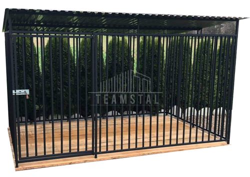 Dach wykonany z blachy trapezowej T12 ocynk zapewnia skuteczną ochronę przed deszczem i słońcem. Jego spad w tył nie tylko chroni wnętrze kojca, ale również sprawia, że wygląd całej konstrukcji jest elegancki i nowoczesny. Wysokość przodu wynosząca 175 cm oraz wysokość tyłu 155 cm pozwala psu na swobodę ruchów, a zestawienie kolorów blachy dachowej z pełnej palety RAL umożliwia idealne dopasowanie do stylu Twojego ogrodu.