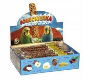 Produkt dostarczy Twojemu ptakowi niezbędnych witamin B1, B2, B6, K3 oraz witaminy C, a także wapnia i cennych mikro- oraz makroelementów. Bogaty skład obejmujący proso, owies bezłuskowy, susz owoców tropikalnych, biszkopty i miód zapewnia pełnowartościowe uzupełnienie diety.