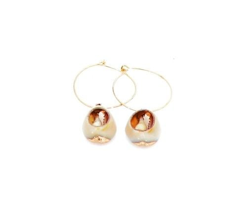 Kolczyki koła z ozdobą w kształcie muszelki. Długość 5 cm, szerokość 2,5 cm Warstwa złota naniesiona w metodzie electroplated * Pokryte jest w całości 4 - 8 mikronową warstwą 14K, 18K i 24K złota * Warstwa złocenia pokryta jest lakierem jubilerskim, który zabezpiecza powłokę złota przed ścieraniem i nadaje wspaniały połysk * Biżuteria wykonana ze stali szlachetnej-należy do grupy stali o strukturze austenitycznej ( podobna chirurgiczna 316 L) : - jest hipoalergiczna i nie uczula, ponieważ nie emituje związków niklu do organizmu - nie koroduje, nie odbarwia się i długo cieszy swoim blaskiem - ścieralność uzależniona od noszenia i od pH ciała - nie wymaga specjalnej konserwacji jak biżuteria ze srebra, czy złota Ze względu na różne ustawienia monitorów oraz różną jakość wyświetlaczy zastosowanych w urządzeniach mobilnych, kolory przedstawione na zdjęciach mogą nieznacznie różnić się od rzeczywistych. Dokładamy wszelkich starań, aby na stronie Sklepu przedstawiać tylko realne zdjęcia produktów, jak najbardziej zbliżone do rzeczywistości.