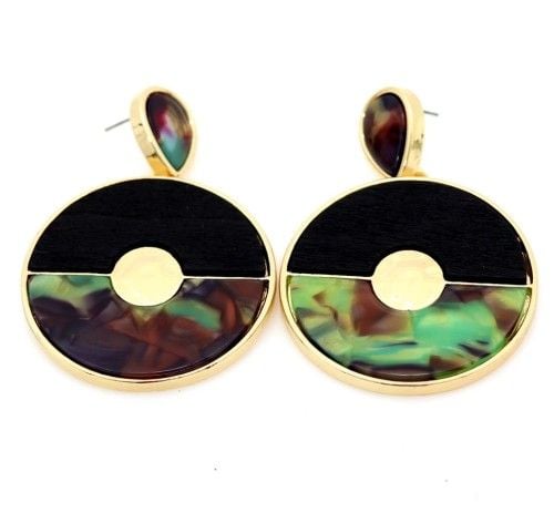Kolczyki w kolorze złotym, wypełnione mozaiką w różnych pastelowych kolorach. Wyjątkowe przypadkowe wzory pozwalają na różną stylizację, swobodę w doborze dodatków.