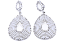 Kolczyki w kolorze srebrne, ażurowe , wysadzane cyrkoniami. * Warstwa srebra naniesiona w metodzie electroplated * Pokryte jest w całości 4 - 8 mikronową warstwą srebra pr. 925 * Warstwa srebrzenia pokryta jest lakierem jubilerskim, który zabezpiecza powłokę srebra przed ścieraniem i nadaje wspaniały połysk * Biżuteria wykonana ze stali szlachetnej-należy do grupy stali o strukturze austenitycznej ( podobna chirurgiczna 316 L) : - jest hipoalergiczna i nie uczula, ponieważ nie emituje związków niklu do organizmu - nie koroduje, nie odbarwia się i długo cieszy swoim blaskiem - ścieralność uzależniona od noszenia i od pH ciała - nie wymaga specjalnej konserwacji jak biżuteria ze srebra, czy złota