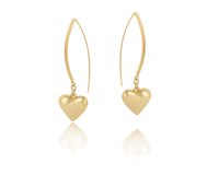 Pozłacane kolczyki, pękate serca. Długość kolczyka ok. 6,3 cm. Wielkość serduszka 2cm/ 2 cm.