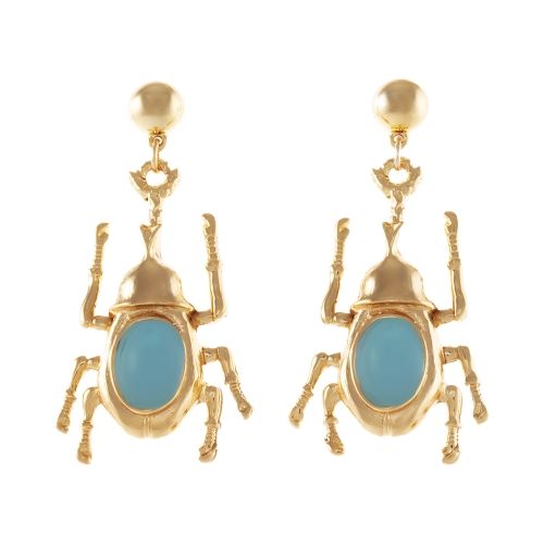Wyjątkowe kolczyki w kształcie skarabeuszy – starożytnych symboli ochrony i odrodzenia. W ich wnętrzu kryje się turkusowy środek, ręcznie malowany emalią, co nadaje im niepowtarzalny charakter i artystyczny detal. ✔️ Ręcznie wykonane i malowane – każdy egzemplarz jest unikalny ✔️ Symbolika skarabeusza – talizman siły i szczęścia ✔️ Elegancki, a jednocześnie oryginalny dodatek do każdej stylizacji Biżuteria dla osób, które cenią rękodzieło, znaczenie symboli i wyjątkowe wzornictwo. Długość kolczyka 5,8 cm. Szerokość kolczyka 3 cm.