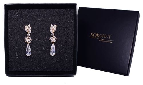 Wysoka estetyka kolczyków ROSIE gold wynika z misternie osadzonych cyrkonii szlifowanych sześciennie klasy AAA+. Każdy kamień jest ręcznie oprawiony z dbałością o najmniejsze detale, co sprawia, że kolczyki są nie tylko piękne, ale także trwałe. Logo KOKONET to gwarancja najwyższej jakości oraz unikalnego designu, który zachwyci każdą przyszłą pannę młodą.