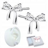 ✔️ Delikatny wzór kokardek z białymi cyrkoniami, idealny jako wyjątkowy prezent dla dziewczynek i kobiet, z łatwym zapięciem sztyftowym.