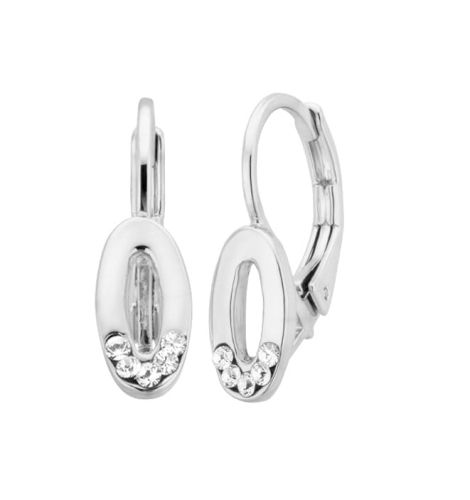 Kolczyki w kształcie elipsy z krszytałkami Swarovskiego. Kolczyki długości 2cm, szerokość 0,4cm. Kolczyki posrebrzane.