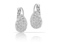 Posrebrzane kolczyki w kształcie kropli, bogato zdobione kryształkami Preciosa.