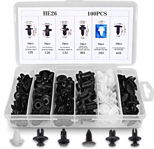 Spinki samochodowe służą do łączenia ze sobą poszczególnych części samochodu. Nasz zestaw możesz wykorzystać przy naprawie lub wymianie takich elementów jak: