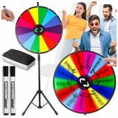 To wysokiej jakości Koło Fortuny ze statywem o średnicy 60 cm wyróżnia się nie tylko atrakcyjnym, wielokolorowym designem, ale także wyjątkową funkcjonalnością. Z 14 konfigurowalnymi polami na suchościeralnej powierzchni, umożliwia łatwe dostosowanie do dowolnej gry, loterii czy konkursu, zapewniając niezawodną zabawę i angażując wszystkich uczestników na najwyższym poziomie.