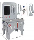 Z wieloma interaktywnymi elementami, takimi jak ruchoma piła tarczowa, zębatki ze wzorami narzędzi, kłódką i schowkiem, dziecko nie tylko świetnie się bawi, ale również rozwija umiejętności motoryczne, logiczne myślenie i koncentrację.