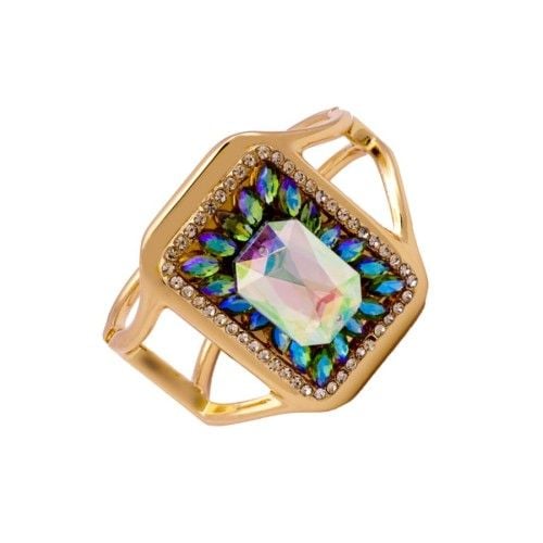 Niezwykle kolorowa bransoletka z kamieniami Wymiary bransoletki średnica 6,5 cm, wysokość 2,8 cm, ozdoba 5,2 x 3,8 cm Ze względu na różne ustawienia monitorów oraz różną jakość wyświetlaczy zastosowanych w urządzeniach mobilnych, kolory przedstawione na zdjęciach mogą nieznacznie różnić się od rzeczywistych. Dokładamy wszelkich starań, aby na stronie Sklepu przedstawiać tylko realne zdjęcia produktów, jak najbardziej zbliżone do rzeczywistości. Stal szlachetna pozłacana. Gwarancja pozłocenia i jakości. Warstwa złota naniesiona w metodzie - PVD- napylanie próżniowe jonami tytanu, czy też azotkiem tytanu jest nowoczesną metodą nanoszenia powłok o bardzo dużej trwałości. * Pokryte jest w całości 4 - 8 mikronową warstwą 14K, 18K i 24K złota. * Warstwa złocenia pokryta jest lakierem jubilerskim, który zabezpiecza powłokę złota przed ścieraniem i nadaje wspaniały połysk * Biżuteria wykonana ze stali szlachetnej-należy do grupy stali o strukturze austenitycznej ( podobna chirurgiczna 316 L) : - jest hipoalergiczna i nie uczula, ponieważ nie emituje związków niklu do organizmu - nie koroduje, nie odbarwia się i długo cieszy swoim blaskiem - ścieralność uzależniona od noszenia i od pH ciała - nie wymaga specjalnej konserwacji jak biżuteria ze srebra czy złota