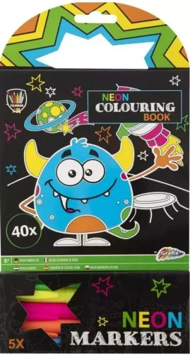 Kolorowanka neonowa o wymiarach 15 x 15 cm. Składa się 40 stron do pokolorowania, w zestawie także neonowe flamastry 5 sztuk.Kolorowanka z ciekawymi obrazkami sympatycznych postaci zachęca do pokolorowania. Produkt przeznaczony jest dla dzieci od 3 roku życia.