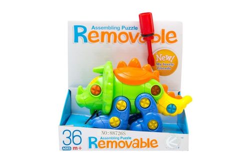 Zabawka dinozaur z możliwością skręcania i rozkręcania to świetny pomysł na rozwój zdolności manualnych u dziecka. Do zestawu dołączony śrubokręt oraz sznurek o długości 65 cm. Zabawka wykonana z plastiku.
