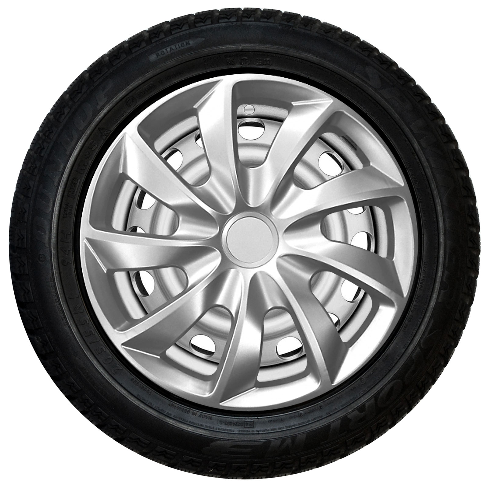 Pomocne informacje: W celu właściwego doboru średnicy kołpaków, warto skupić się na liczbie widocznej na oponie (tuż przed symbolem „R”). Liczba ta oznacza średnicę felgi, a kołpaki QUAD SILVER są dostosowane do wielu modeli samochodów, co sprawia, że są niezwykle uniwersalne.