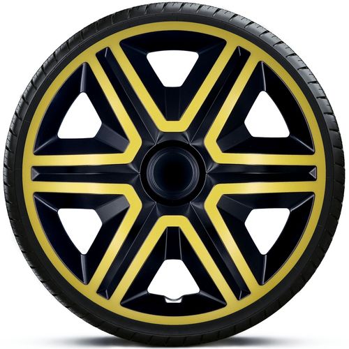 Komplet 4 uniwersalnych kołpaków samochodowych ACTION DUOCOLOR GOLD BLACK - 15 cali to idealne rozwiązanie dla każdego, kto pragnie podkreślić styl swojego samochodu, a jednocześnie zadbać o jego estetyczny wygląd. Zaprojektowane z myślą o użytkownikach aut takich jak DACIA DUSTER, DOKKER, LODGY, nasze kołpaki są nie tylko praktyczne, ale również nadzwyczaj atrakcyjne wizualnie.