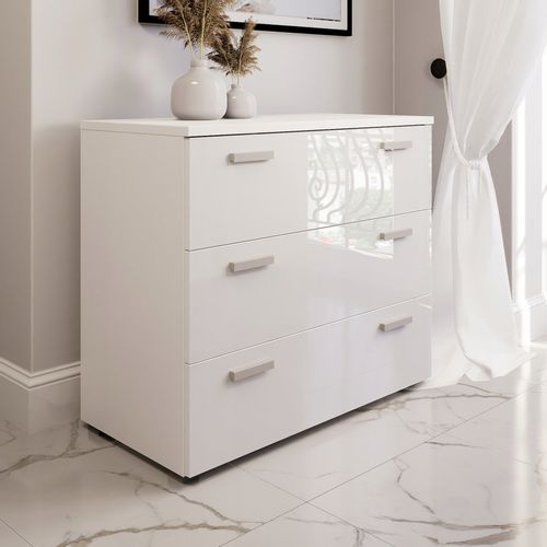 KOMODA 90cm połysk to idealne rozwiązanie dla każdego, kto marzy o nowoczesnym i funkcjonalnym meblu, który odmieni wnętrze swojego domu. Przykuwający uwagę design sprawia, że komoda świetnie wkomponowuje się w różnorodne aranżacje – czy to w sypialni, salonie, czy przedpokoju. Jej wysoka jakość wykonania oraz estetyczne fronty z płyty o wysokim połysku nadają jej elegancji i klasy.