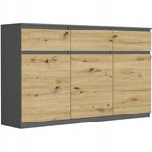 Ta nowoczesna komoda z linii MODERN model S-3 ANTRACYT MIX ARTISAN wyróżnia się minimalistyczną elegancją i solidną konstrukcją, która idealnie wpisuje się w codzienne potrzeby. Z trzema pakownymi szufladami na prowadnicach rolkowych oraz trzema szafkami z półkami, zapewnia wygodne przechowywanie ubrań, akcesoriów czy dokumentów, tworząc porządek bez wysiłku.