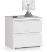 Szafka nocna CL2 40 cm biały akryl połysk to minimalistyczny mebel do sypialni lub pokoju dziennego. Niewielka, mająca 40 cm wysokości szafka idealnie nadaje się, by ustawić ją obok łóżka. Powstała z płyty MDF z powłoką akrylową i utrzymana jest w białej kolorystyce. Szafki nocne CL2 wykończone są na mat, za wyjątkiem frontów dwóch pojemnych szuflad, które wykończone są na biały połysk. Brak wystających klamek sprawia, że szafka nocna CL2 jest bezpieczna dla mieszkań z dziećmi. Mebel jest przeznaczony do samodzielnego montażu. Produkt należy do systemu mebli CLP. Z tego powodu idealnie się komponuje z pozostałymi elementami tej serii. W połączeniu z resztą mebli pozwala stworzyć niebanalne wnętrza nie tylko sypialni, ale też salonu, biura, pokoju dla dziecka czy nastolatka.
