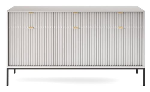 Komoda Delicious duża ryflowana szara od marki Intesi to połączenie stylu, funkcjonalności i nowoczesnego designu, które uczyni Twoje wnętrze wyjątkowym. Ta elegancka komoda to idealne rozwiązanie dla osób ceniących sobie przestrzeń oraz organizację. Wykonana z wysokiej jakości materiałów, takich jak meblowa płyta, metal i aluminium, komoda jest nie tylko trwała, ale także pięknie wpisuje się w nowoczesne aranżacje.