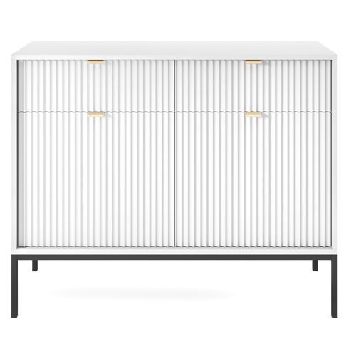 Komoda Delicious ryflowana biała marki Intesi to fantastyczny mebel do organizacji różnej wielkości przedmiotów. Komodę o białej i czarnej barwie zrobiono z aluminium, meblowej płyty i metalu, dzięki czemu jest nie tylko oryginalna, ale też solidna. Dzięki temu, że komodę stworzono z z metalu, meblowej płyty i aluminium, jest ona uniwersalna, solidna i optycznie podkreśla styl pomieszczenia, ale liczymy na to, że samodzielnie przekonasz się też o innych plusach tych surowców. Klasycznego i minimalistycznego wyglądu całości komody nie burzy delikatny ozdobnik, jakim są metalowe uchwyty.