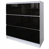 Wykonana z płyty laminowanej o grubości 16 mm oraz frontów z MDF pokrytych akrylem, gwarantuje solidność i trwałość. Wnętrze komody jest pojemne i umożliwia przechowywanie ubrań, akcesoriów oraz różnorodnych domowych drobiazgów. To propozycja dla osób poszukujących mebla, który będzie jednocześnie praktyczny i dekoracyjny.