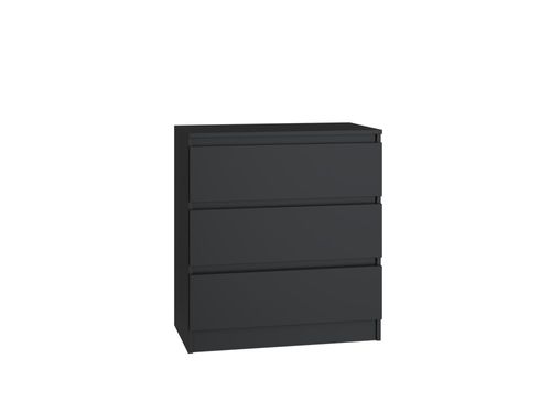 KOMODA MALWA M3 70 - CZERŃ to wyjątkowy mebel, który na pewno odmieni przestrzeń Twojego domu. Wyróżnia się nowoczesnym designem oraz praktycznymi rozwiązaniami. Ta duża komoda na 3 szuflady z kolekcji MALWA doskonale sprawdzi się zarówno w sypialni, salonie, jak i pokoju dziecka, tworząc przestrzeń pełną harmonii i stylu.
