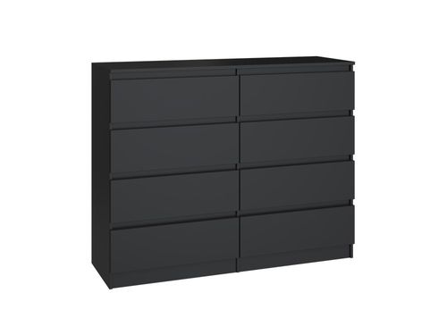KOMODA MALWA M8 120 - CZERŃ: Wprowadź nowoczesność i elegancję do swojego wnętrza z tą wyjątkową komodą z kolekcji MALWA. Ta duża komoda na 8 szuflad w kolorze czerni to nie tylko mebel, to stylowy dodatek do Twojego salonu, sypialni czy pokoju dziecka.
