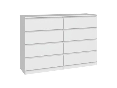 KOMODA MALWA M8 140 - BIEL to idealne rozwiązanie dla każdego, kto pragnie połączyć styl, funkcjonalność i wysoką jakość wykonania w swoim wnętrzu. Dzięki nowoczesnemu designowi, ta duża komoda z serii MALWA jest niezwykle uniwersalna, co sprawia, że doskonale sprawdzi się zarówno w sypialni, salonie, jak i w pokoju dziecka.