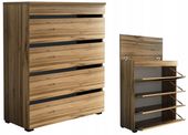✔️ Funkcjonalne otwory – drzwiczki z ogranicznikiem i podnoszony blat z schowkiem – ułatwiające organizację butów i drobiazgów bez zbędnych wysiłków.