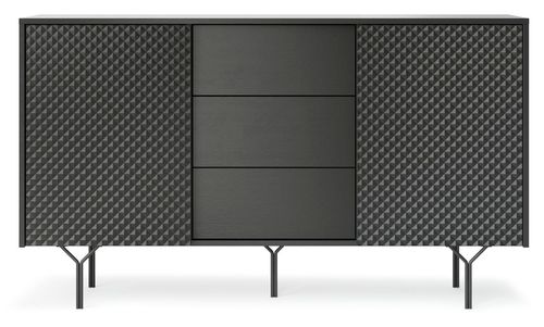 Komoda Navara została wykonana z materiałów najwyższej jakości. Płyta MDF pokryta czarną półmatową okleiną, charakteryzuje się idealną gładkością i jest odporna na wilgoć, zarysowania i wysokie temperatury. Tak samo jak metalowe nogi odpowiednio zabezpieczone przed odpryskiem farby spowodowanym, np. pracą robota sprzątającego. Komoda Navara wykonana jest precyzyjnie zgodnie z najwyższymi standardami, by służyć Ci przez lata! Wszystkie elementy komody do salonu są starannie dopasowane, aby zagwarantować trwałość i bezproblemową eksploatację mebla.