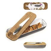 Zestaw zawiera pojemnik na pieczywo wykonany z tworzywa sztucznego, deskę/pokrywkę wykonaną z bambusa oraz specjalny nóż - idealny do ułatwienia przygotowywania posiłków i utrzymania porządku.