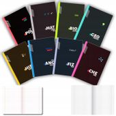✔️ Estetyczny design z nowoczesnymi grafikami na okładkach, zaokrąglonymi rogami i kolorowymi paskami ułatwiającymi identyfikację zeszytów.