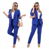 Marynarka posiada imitacje kieszonek po bokach oraz podszewkę, która nadaje jej szykowny wygląd. Spodnie z kolei mają wysoki stan, ściągane są gumką w pasie oraz wyposażone są w dwie praktyczne kieszenie boczne.