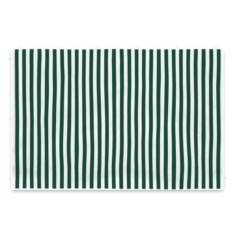 Komplet dwóch ścian z oknami do pawilonu o podstawie 3 x 3 m - biało-zielony jest i do innych pawilonów o podtsawie 3 x 3 m. Ścianki łatwe w montażu za pomocą pasków na rzepy lub haczyków. Materiał wodoszczelny oddychający - poliester PA powlekany, chroniący przed wiatrem.