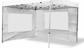 Komplet dwóch ścian do pawilonu PROFI o podstawie 3 x 3 m - biały. Ścianki łatwe w montażu za pomocą pasków na rzepy lub haczyków. Materiał wodoszczelny oddychający - poliester PA powlekany, chroniący przed wiatrem.