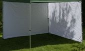 Komplet dwóch ścian do pawilonu PROFI o podstawie 3 x 3 m ewentualnie 3 x 6, 3 x 9 m - biały. Ścianki łatwe w montażu za pomocą pasków na rzepy lub haczyków. Materiał wodoszczelny oddychający - poliester PA powlekany, chroniący przed wiatrem.