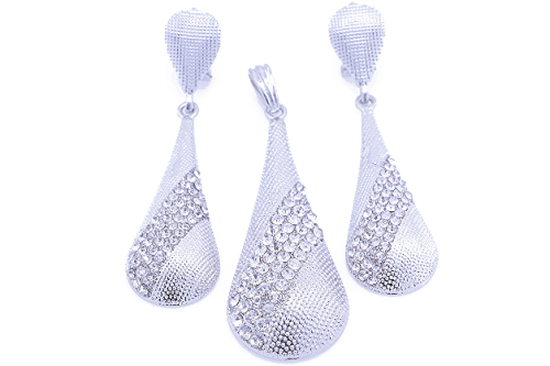Komplet w kolorze srebrnym wysadzany cyrkoniami.* Warstwa srebra naniesiona w metodzie electroplated * Pokryte jest w całości 4 - 8 mikronową warstwą srebra pr. 925 * Warstwa srebrzenia pokryta jest lakierem jubilerskim, który zabezpiecza powłokę srebra przed ścieraniem i nadaje wspaniały połysk * Biżuteria wykonana ze stali szlachetnej-należy do grupy stali o strukturze austenitycznej ( podobna chirurgiczna 316 L) : - jest hipoalergiczna i nie uczula, ponieważ nie emituje związków niklu do organizmu - nie koroduje, nie odbarwia się i długo cieszy swoim blaskiem - ścieralność uzależniona od noszenia i od pH ciała - nie wymaga specjalnej konserwacji jak biżuteria ze srebra, czy złota