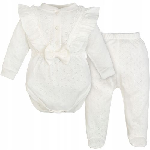 KOMPLET niemowlęcy elegancki AŻUROWY bawełniany Z FALBANKAMI do Chrztu 68 to wyjątkowy wybór dla każdej małej księżniczki! Ten uroczy zestaw odznacza się niepowtarzalnym stylem oraz wysoką jakością wykonania, co czyni go idealnym rozwiązaniem na wyjątkowe okazje, takie jak chrzest.