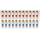 Komplet 22 piłkarzyków, 2 x 11. Pasują do naszych stołów piłkarskich oraz innych w których zastosowano prowadnice o średnicy 15,9 mm.