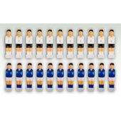 Komplet 22 piłkarzyków, 11 białych - 11 niebieskich. Pasują do naszych stołów piłkarskich oraz innych w których zastosowano prowadnice o średnicy 13 mm.