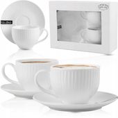 Ten wysokiej jakości komplet porcelanowych filiżanek Zeolia o pojemności 250 ml zachwyca nie tylko eleganckim i ponadczasowym designem, ale także wyjątkową precyzją wykonania. Idealny dla dwojga, ten zestaw z filiżankami i spodeczkami zapewnia harmonię podczas porannej kawy czy popołudniowej herbaty, gwarantując niezawodne doznania smakowe za każdym razem.