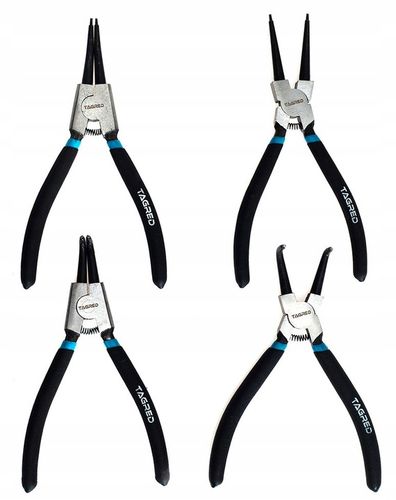 ✔️ Wszechstronność dzięki zestawowi szczypiec prostych i odgiętych, do pracy z pierścieniami wewnętrznymi i zewnętrznymi.