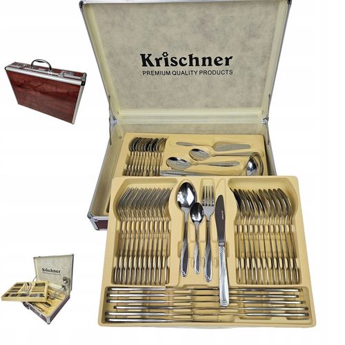 Ten wyjątkowy komplet sztućców to nie tylko praktyczny zestaw do użytku codziennego, ale również doskonały pomysł na eleganicki i wystawny prezent. Jego unikalna walizka z półkami sprawi, że otrzymujący go poczuje się wyróżniony i doceniony.