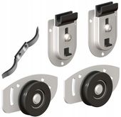Wykonany z trwałych materiałów odpornych na zużycie, komplet zawiera wszystko niezbędne do montażu: 2 górne ślizgacze, 2 dolne wózki, 14 śrub montażowych 3,5x16 mm oraz plastikowy stoper górny. Zapewnia to długoterminową ochronę przed awariami i gwarantuje bezpieczeństwo w każdym środowisku, od sypialni po garderoby.