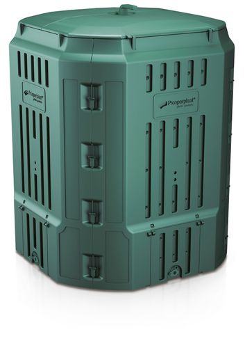 IKB900 to duża, 900-litrowa wersja kompostownika Compothermo. Dzięki podwójnym ściankom i pokrywie, zapewniającym właściwą izolację i optymalną temperaturę, Compothermo IKB900 jest niezwykle wydajny. Jego dodatkowym atutem jest odporność na uszkodzenia i niekorzystne warunki atmosferyczne. Posiada wygodną rączkę do zamykania pokrywy, a w dolnej części uchylne klapy, które zapewniają nam stały dostęp do gotowego kompostu.