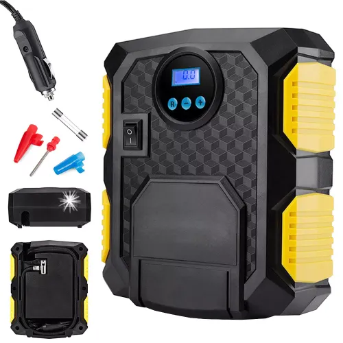 Kompresor samochodowy to przenośne urządzenie do pompowania wszelkiego rodzaju opon samochodowych, motocyklowych, rowerowych, piłek, materacy i wiele innych. Umożliwiają to dołączone do zestawu adaptery. Dzięki czytelnemu ekranowi sprawdzimy jakie ciśnienie jest np. w kole. Za pomocą przycisków "+" i "-" ustawimy odpowiednie dla nas ciśnienie. Kompresor po uzyskaniu zadanego ciśnienia automatycznie zakończy pracę.