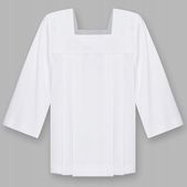 Ta komża ministrancka wykonana jest z najwyższej jakości tkaniny z domieszką streczu, co zapewnia nie tylko wygodę, ale także trwałość i łatwość w utrzymaniu czystości. Zakładki z przodu i z tyłu sprawiają, że doskonale układa się na ciele, gwarantując schludny i elegancki wygląd.
