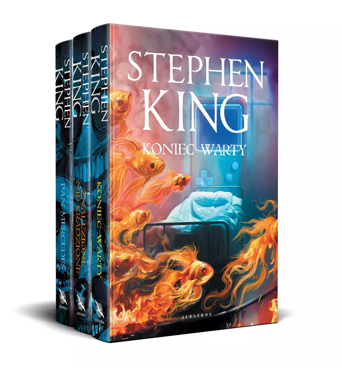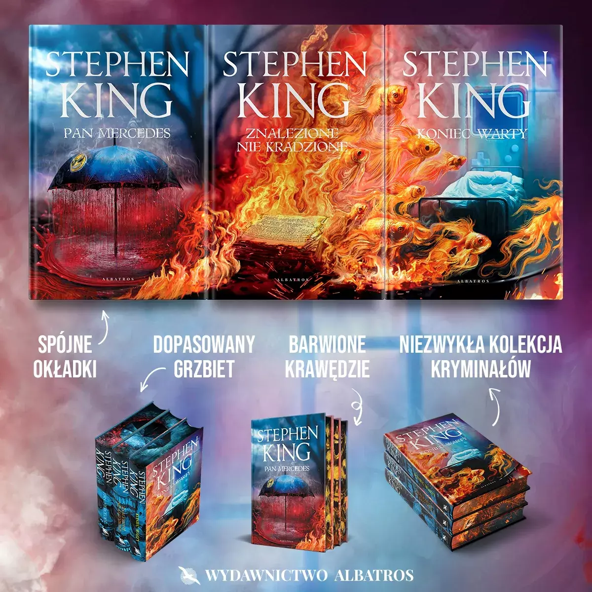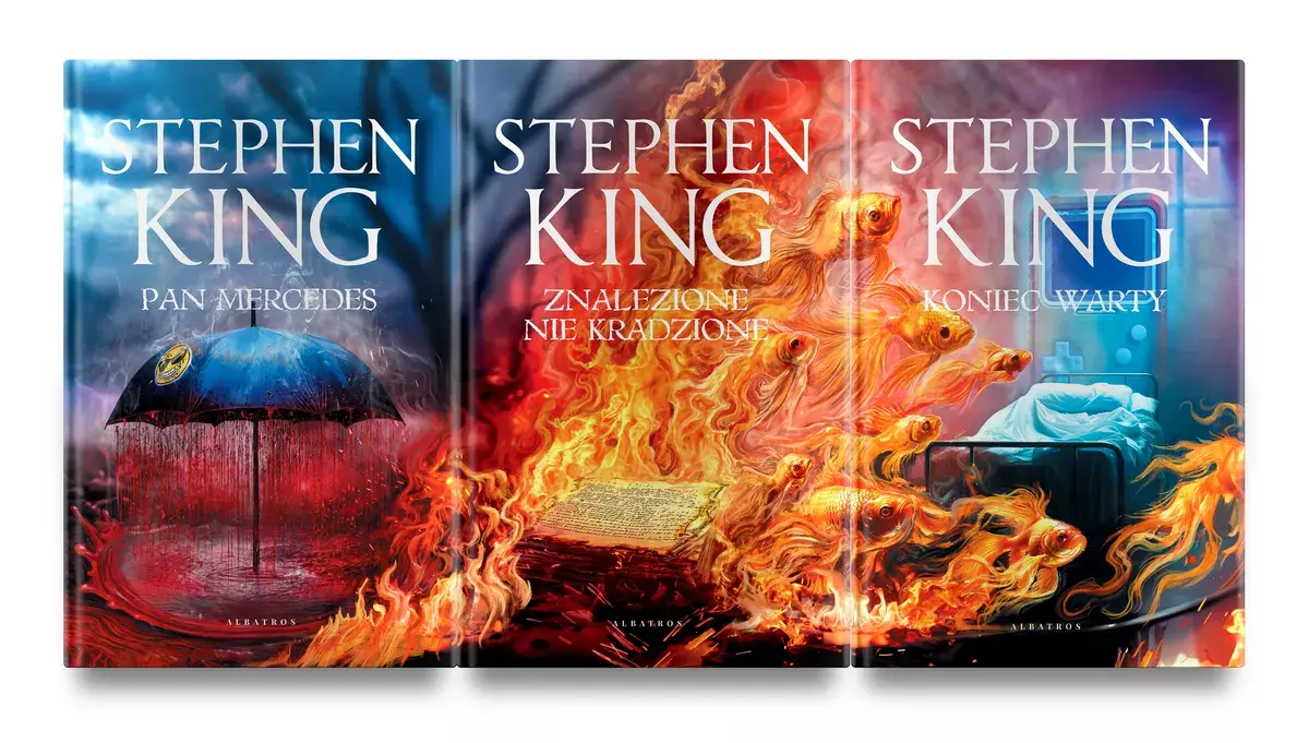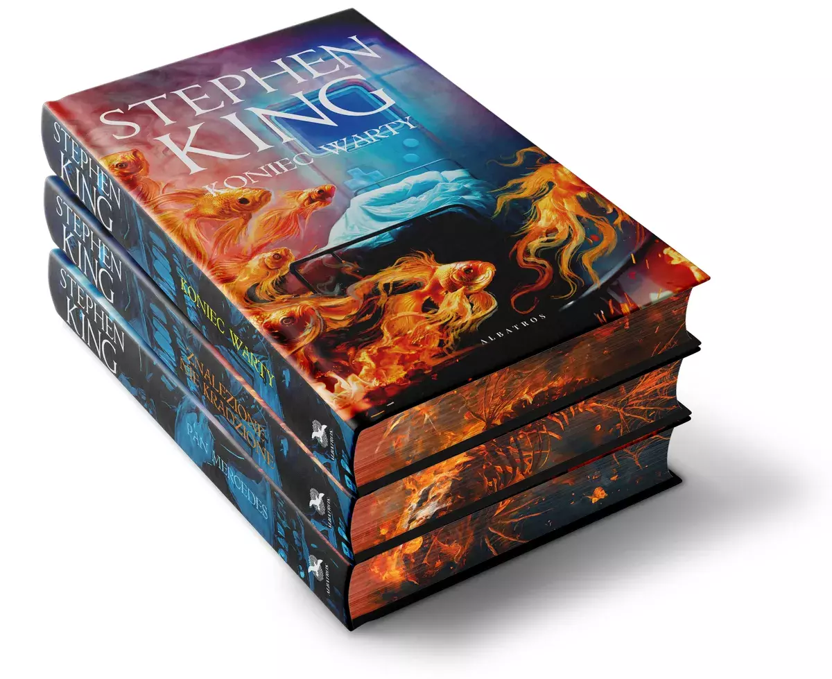 Edycja limitowana książek z serii „Pan Mercedes” – wyjątkowe wydanie w oprawie zintegrowanej i z ilustrowanymi brzegamij, ze wspólną grafiką, która łączy wszystkie trzy okładki z serii: Pan Mercedes, Znalezione nie kradzione, Koniec warty.