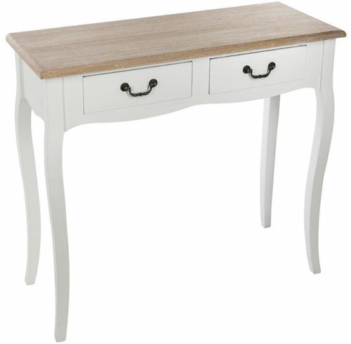 Ta piękna biała konsola z blatem w naturalnym kolorze to idealny dodatek do Twojego salonu lub modnego przedpokoju. Dzięki nietypowym, sosnowym nogom, konsola wyróżnia się spośród innych mebli.